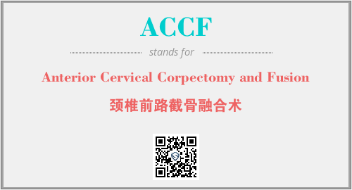 英文缩略词“ACCF”经常作为“Anterior Cervical Corpectomy and Fusion”的英文缩写来使用,中文表示:“颈椎前路截骨融合术”。本文将详细介绍英文缩写词ACCF所代表英文单词,其对应的中文拼音、详细解释以及在英语中的流行度。此外,还有关于缩略词ACCF的分类、应用领域及相关应用示例等。