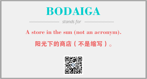 上述内容是“A store in the sun (not an acronym).”作为“BODAIGA”的缩写,解释为“阳光下的商店(不是缩写)。”时的信息,以及英文缩略词BODAIGA所代表的英文单词,其对应的中文拼音、详细解释以及在英文中的流行度和相关分类、应用领域及应用示例等。