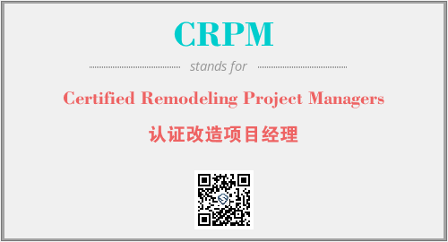 上述内容是“Certified Remodeling Project Managers”作为“CRPM”的缩写,解释为“认证改造项目经理”时的信息,以及英文缩略词CRPM所代表的英文单词,其对应的中文拼音、详细解释以及在英文中的流行度和相关分类、应用领域及应用示例等。