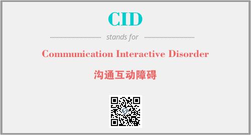 上述内容是“Communication Interactive Disorder”作为“CID”的缩写,解释为“沟通互动障碍”时的信息,以及英文缩略词CID所代表的英文单词,其对应的中文拼音、详细解释以及在英文中的流行度和相关分类、应用领域及应用示例等。