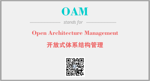 英文缩略词“OAM”经常作为“Open Architecture Management”的英文缩写来使用,中文表示:“开放式体系结构管理”。本文将详细介绍英文缩写词OAM所代表英文单词,其对应的中文拼音、详细解释以及在英语中的流行度。此外,还有关于缩略词OAM的分类、应用领域及相关应用示例等。