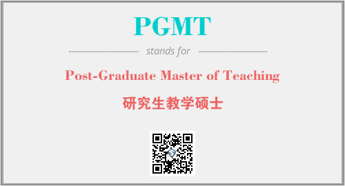 上述内容是“Post-Graduate Master of Teaching”作为“PGMT”的缩写,解释为“研究生教学硕士”时的信息,以及英文缩略词PGMT所代表的英文单词,其对应的中文拼音、详细解释以及在英文中的流行度和相关分类、应用领域及应用示例等。
