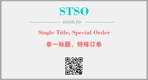 上述内容是“Single Title, Special Order”作为“STSO”的缩写,解释为“单一标题,特殊订单”时的信息,以及英文缩略词STSO所代表的英文单词,其对应的中文拼音、详细解释以及在英文中的流行度和相关分类、应用领域及应用示例等。