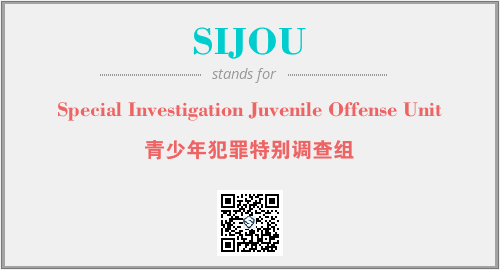 上述内容是“Special Investigation Juvenile Offense Unit”作为“SIJOU”的缩写,解释为“青少年犯罪特别调查组”时的信息,以及英文缩略词SIJOU所代表的英文单词,其对应的中文拼音、详细解释以及在英文中的流行度和相关分类、应用领域及应用示例等。