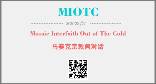 英文缩略词“MIOTC”经常作为“Mosaic Interfaith Out of The Cold”的英文缩写来使用,中文表示:“马赛克宗教间对话”。本文将详细介绍英文缩写词MIOTC所代表英文单词,其对应的中文拼音、详细解释以及在英语中的流行度。此外,还有关于缩略词MIOTC的分类、应用领域及相关应用示例等。