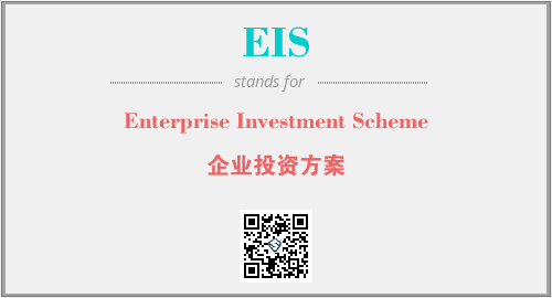 上述内容是“Enterprise Investment Scheme”作为“EIS”的缩写,解释为“企业投资方案”时的信息,以及英文缩略词EIS所代表的英文单词,其对应的中文拼音、详细解释以及在英文中的流行度和相关分类、应用领域及应用示例等。