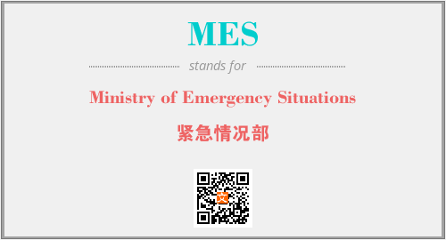英文缩略词“MES”经常作为“Ministry of Emergency Situations”的英文缩写来使用,中文表示:“紧急情况部”。本文将详细介绍英文缩写词MES所代表英文单词,其对应的中文拼音、详细解释以及在英语中的流行度。此外,还有关于缩略词MES的分类、应用领域及相关应用示例等。