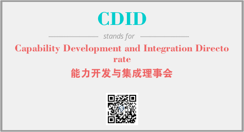 英文缩略词“CDID”经常作为“Capability Development and Integration Directorate”的英文缩写来使用,中文表示:“能力开发与集成理事会”。本文将详细介绍英文缩写词CDID所代表英文单词,其对应的中文拼音、详细解释以及在英语中的流行度。此外,还有关于缩略词CDID的分类、应用领域及相关应用示例等。