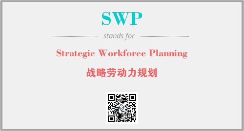 英文缩略词“SWP”经常作为“Strategic Workforce Planning”的英文缩写来使用,中文表示:“战略劳动力规划”。本文将详细介绍英文缩写词SWP所代表英文单词,其对应的中文拼音、详细解释以及在英语中的流行度。此外,还有关于缩略词SWP的分类、应用领域及相关应用示例等。