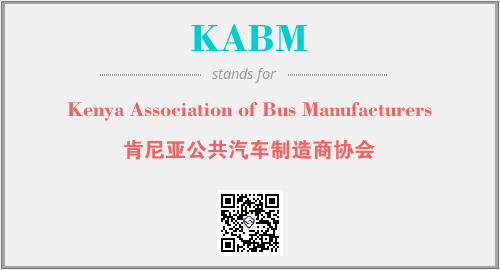 英文缩略词“KABM”经常作为“Kenya Association of Bus Manufacturers”的英文缩写来使用,中文表示:“肯尼亚公共汽车制造商协会”。本文将详细介绍英文缩写词KABM所代表英文单词,其对应的中文拼音、详细解释以及在英语中的流行度。此外,还有关于缩略词KABM的分类、应用领域及相关应用示例等。