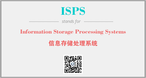 以上为Information Storage Processing Systems英文缩略词ISPS的中文解释,以及该英文缩写在英语的流行度、分类和应用领域方面的信息。