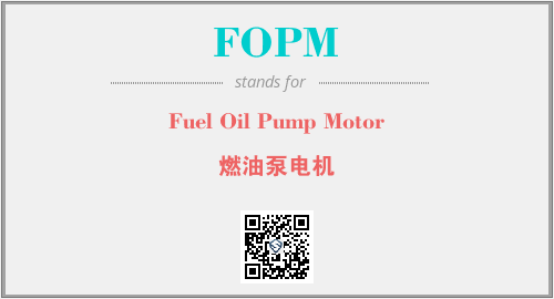 以上为Fuel Oil Pump Motor英文缩略词FOPM的中文解释,以及该英文缩写在英语的流行度、分类和应用领域方面的信息。