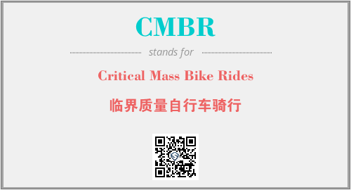 英文缩略词“CMBR”经常作为“Critical Mass Bike Rides”的英文缩写来使用,中文表示:“临界质量自行车骑行”。本文将详细介绍英文缩写词CMBR所代表英文单词,其对应的中文拼音、详细解释以及在英语中的流行度。此外,还有关于缩略词CMBR的分类、应用领域及相关应用示例等。