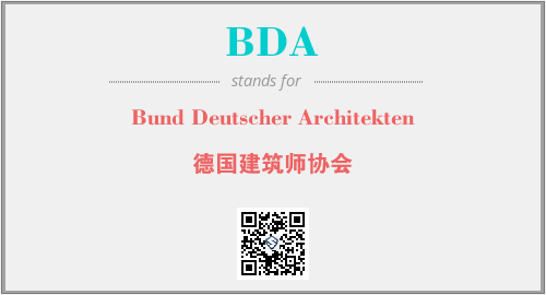 上述内容是“Bund Deutscher Architekten”作为“BDA”的缩写,解释为“德国建筑师协会”时的信息,以及英文缩略词BDA所代表的英文单词,其对应的中文拼音、详细解释以及在英文中的流行度和相关分类、应用领域及应用示例等。