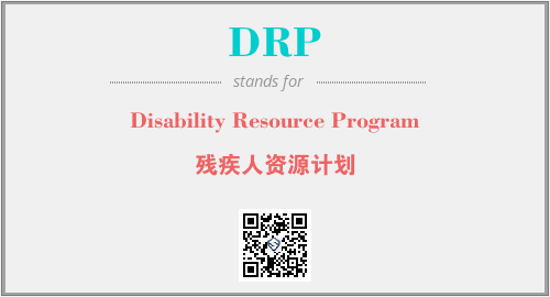 上述内容是“Disability Resource Program”作为“DRP”的缩写,解释为“残疾人资源计划”时的信息,以及英文缩略词DRP所代表的英文单词,其对应的中文拼音、详细解释以及在英文中的流行度和相关分类、应用领域及应用示例等。