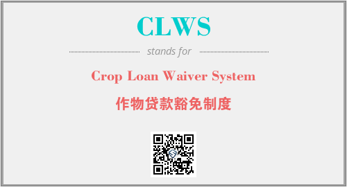 上述内容是“Crop Loan Waiver System”作为“CLWS”的缩写,解释为“作物贷款豁免制度”时的信息,以及英文缩略词CLWS所代表的英文单词,其对应的中文拼音、详细解释以及在英文中的流行度和相关分类、应用领域及应用示例等。