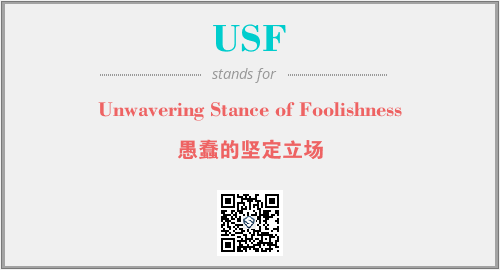 上述内容是“Unwavering Stance of Foolishness”作为“USF”的缩写,解释为“愚蠢的坚定立场”时的信息,以及英文缩略词USF所代表的英文单词,其对应的中文拼音、详细解释以及在英文中的流行度和相关分类、应用领域及应用示例等。