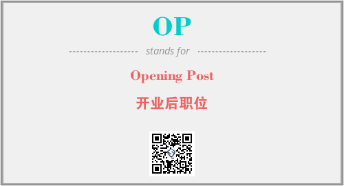 英文缩略词“OP”经常作为“Opening Post”的英文缩写来使用,中文表示:“开业后职位”。本文将详细介绍英文缩写词OP所代表英文单词,其对应的中文拼音、详细解释以及在英语中的流行度。此外,还有关于缩略词OP的分类、应用领域及相关应用示例等。