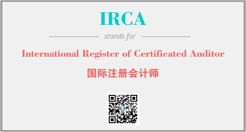 上述内容是“International Register of Certificated Auditor”作为“IRCA”的缩写,解释为“国际注册会计师”时的信息,以及英文缩略词IRCA所代表的英文单词,其对应的中文拼音、详细解释以及在英文中的流行度和相关分类、应用领域及应用示例等。