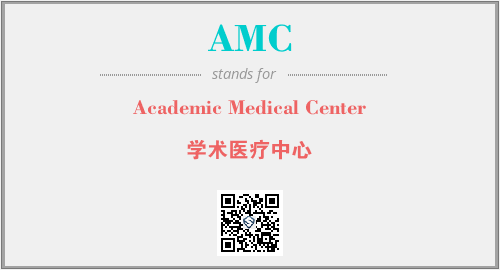 上述内容是“Academic Medical Center”作为“AMC”的缩写,解释为“学术医疗中心”时的信息,以及英文缩略词AMC所代表的英文单词,其对应的中文拼音、详细解释以及在英文中的流行度和相关分类、应用领域及应用示例等。