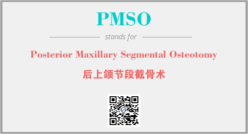 上述内容是“Posterior Maxillary Segmental Osteotomy”作为“PMSO”的缩写,解释为“后上颌节段截骨术”时的信息,以及英文缩略词PMSO所代表的英文单词,其对应的中文拼音、详细解释以及在英文中的流行度和相关分类、应用领域及应用示例等。