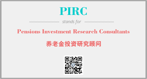 英文缩略词“PIRC”经常作为“Pensions Investment Research Consultants”的英文缩写来使用,中文表示:“养老金投资研究顾问”。本文将详细介绍英文缩写词PIRC所代表英文单词,其对应的中文拼音、详细解释以及在英语中的流行度。此外,还有关于缩略词PIRC的分类、应用领域及相关应用示例等。
