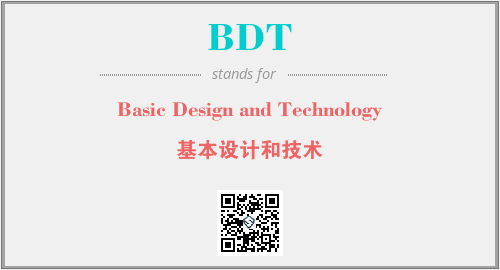英文缩略词“BDT”经常作为“Basic Design and Technology”的英文缩写来使用,中文表示:“基本设计和技术”。本文将详细介绍英文缩写词BDT所代表英文单词,其对应的中文拼音、详细解释以及在英语中的流行度。此外,还有关于缩略词BDT的分类、应用领域及相关应用示例等。