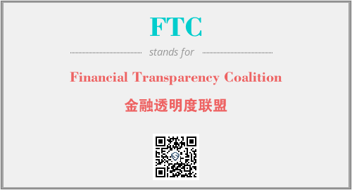 上述内容是“Financial Transparency Coalition”作为“FTC”的缩写,解释为“金融透明度联盟”时的信息,以及英文缩略词FTC所代表的英文单词,其对应的中文拼音、详细解释以及在英文中的流行度和相关分类、应用领域及应用示例等。