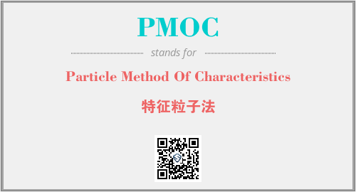 上述内容是“Particle Method Of Characteristics”作为“PMOC”的缩写,解释为“特征粒子法”时的信息,以及英文缩略词PMOC所代表的英文单词,其对应的中文拼音、详细解释以及在英文中的流行度和相关分类、应用领域及应用示例等。