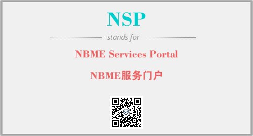 英文缩略词“NSP”经常作为“NBME Services Portal”的英文缩写来使用,中文表示:“NBME服务门户”。本文将详细介绍英文缩写词NSP所代表英文单词,其对应的中文拼音、详细解释以及在英语中的流行度。此外,还有关于缩略词NSP的分类、应用领域及相关应用示例等。