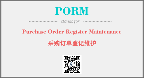 上述内容是“Purchase Order Register Maintenance”作为“PORM”的缩写,解释为“采购订单登记维护”时的信息,以及英文缩略词PORM所代表的英文单词,其对应的中文拼音、详细解释以及在英文中的流行度和相关分类、应用领域及应用示例等。