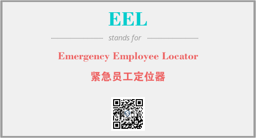 英文缩略词“EEL”经常作为“Emergency Employee Locator”的英文缩写来使用,中文表示:“紧急员工定位器”。本文将详细介绍英文缩写词EEL所代表英文单词,其对应的中文拼音、详细解释以及在英语中的流行度。此外,还有关于缩略词EEL的分类、应用领域及相关应用示例等。