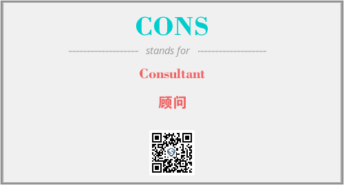 上述内容是“Consultant”作为“CONS”的缩写,解释为“顾问”时的信息,以及英文缩略词CONS所代表的英文单词,其对应的中文拼音、详细解释以及在英文中的流行度和相关分类、应用领域及应用示例等。