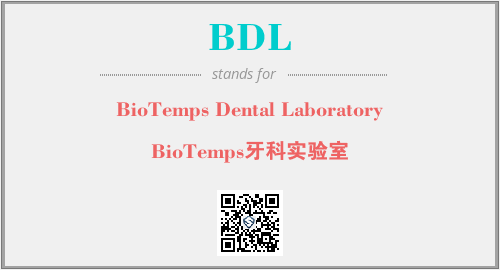 上述内容是“BioTemps Dental Laboratory”作为“BDL”的缩写,解释为“BioTemps牙科实验室”时的信息,以及英文缩略词BDL所代表的英文单词,其对应的中文拼音、详细解释以及在英文中的流行度和相关分类、应用领域及应用示例等。
