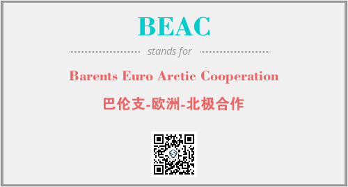上述内容是“Barents Euro Arctic Cooperation”作为“BEAC”的缩写,解释为“巴伦支-欧洲-北极合作”时的信息,以及英文缩略词BEAC所代表的英文单词,其对应的中文拼音、详细解释以及在英文中的流行度和相关分类、应用领域及应用示例等。