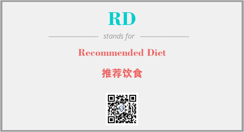 上述内容是“Recommended Diet”作为“RD”的缩写,解释为“推荐饮食”时的信息,以及英文缩略词RD所代表的英文单词,其对应的中文拼音、详细解释以及在英文中的流行度和相关分类、应用领域及应用示例等。