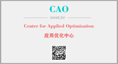 上述内容是“Center for Applied Optimization”作为“CAO”的缩写,解释为“应用优化中心”时的信息,以及英文缩略词CAO所代表的英文单词,其对应的中文拼音、详细解释以及在英文中的流行度和相关分类、应用领域及应用示例等。