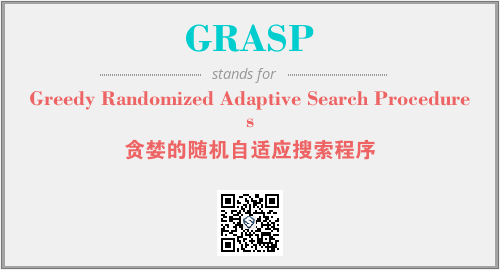 上述内容是“Greedy Randomized Adaptive Search Procedures”作为“GRASP”的缩写,解释为“贪婪的随机自适应搜索程序”时的信息,以及英文缩略词GRASP所代表的英文单词,其对应的中文拼音、详细解释以及在英文中的流行度和相关分类、应用领域及应用示例等。