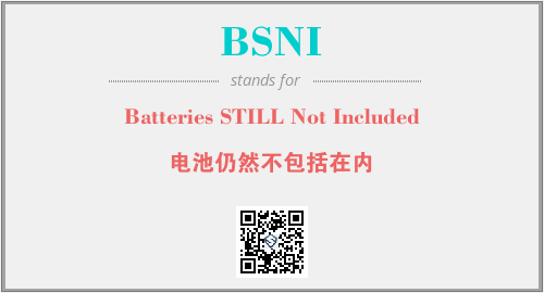 上述内容是“Batteries STILL Not Included”作为“BSNI”的缩写,解释为“电池仍然不包括在内”时的信息,以及英文缩略词BSNI所代表的英文单词,其对应的中文拼音、详细解释以及在英文中的流行度和相关分类、应用领域及应用示例等。