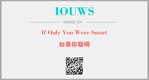 英文缩略词“IOUWS”经常作为“If Only You Were Smart”的英文缩写来使用,中文表示:“如果你聪明”。本文将详细介绍英文缩写词IOUWS所代表英文单词,其对应的中文拼音、详细解释以及在英语中的流行度。此外,还有关于缩略词IOUWS的分类、应用领域及相关应用示例等。