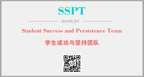 上述内容是“Student Success and Persistence Team”作为“SSPT”的缩写,解释为“学生成功与坚持团队”时的信息,以及英文缩略词SSPT所代表的英文单词,其对应的中文拼音、详细解释以及在英文中的流行度和相关分类、应用领域及应用示例等。