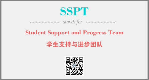 上述内容是“Student Support and Progress Team”作为“SSPT”的缩写,解释为“学生支持与进步团队”时的信息,以及英文缩略词SSPT所代表的英文单词,其对应的中文拼音、详细解释以及在英文中的流行度和相关分类、应用领域及应用示例等。