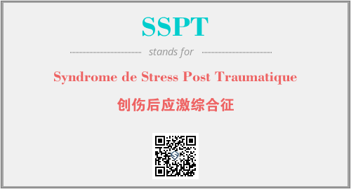 上述内容是“Syndrome de Stress Post Traumatique”作为“SSPT”的缩写,解释为“创伤后应激综合征”时的信息,以及英文缩略词SSPT所代表的英文单词,其对应的中文拼音、详细解释以及在英文中的流行度和相关分类、应用领域及应用示例等。