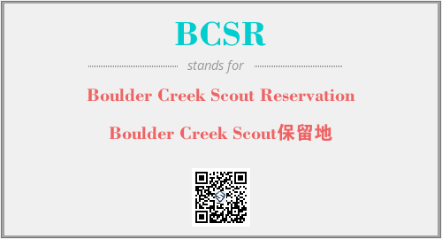 上述内容是“Boulder Creek Scout Reservation”作为“BCSR”的缩写,解释为“Boulder Creek Scout保留地”时的信息,以及英文缩略词BCSR所代表的英文单词,其对应的中文拼音、详细解释以及在英文中的流行度和相关分类、应用领域及应用示例等。