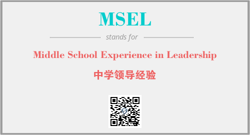 上述内容是“Middle School Experience in Leadership”作为“MSEL”的缩写,解释为“中学领导经验”时的信息,以及英文缩略词MSEL所代表的英文单词,其对应的中文拼音、详细解释以及在英文中的流行度和相关分类、应用领域及应用示例等。