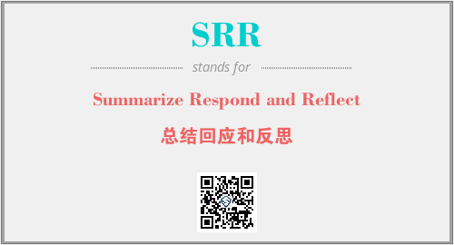 上述内容是“Summarize Respond and Reflect”作为“SRR”的缩写,解释为“总结回应和反思”时的信息,以及英文缩略词SRR所代表的英文单词,其对应的中文拼音、详细解释以及在英文中的流行度和相关分类、应用领域及应用示例等。