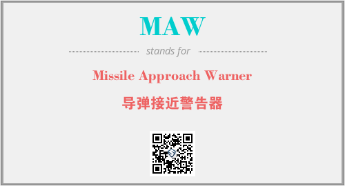 上述内容是“Missile Approach Warner”作为“MAW”的缩写,解释为“导弹接近警告器”时的信息,以及英文缩略词MAW所代表的英文单词,其对应的中文拼音、详细解释以及在英文中的流行度和相关分类、应用领域及应用示例等。