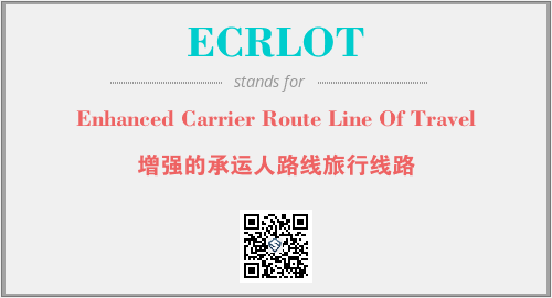 上述内容是“Enhanced Carrier Route Line Of Travel”作为“ECRLOT”的缩写,解释为“增强的承运人路线旅行线路”时的信息,以及英文缩略词ECRLOT所代表的英文单词,其对应的中文拼音、详细解释以及在英文中的流行度和相关分类、应用领域及应用示例等。
