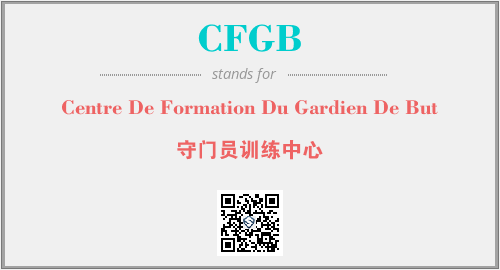 上述内容是“Centre De Formation Du Gardien De But”作为“CFGB”的缩写,解释为“守门员训练中心”时的信息,以及英文缩略词CFGB所代表的英文单词,其对应的中文拼音、详细解释以及在英文中的流行度和相关分类、应用领域及应用示例等。