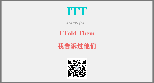 英文缩略词“ITT”经常作为“I Told Them”的英文缩写来使用,中文表示:“我告诉过他们”。本文将详细介绍英文缩写词ITT所代表英文单词,其对应的中文拼音、详细解释以及在英语中的流行度。此外,还有关于缩略词ITT的分类、应用领域及相关应用示例等。